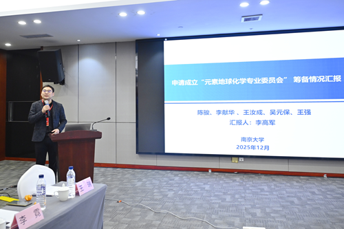 作为发起人之一,南京大学李高军教授向会议提出在学会成立元素地球化学专业委员会的申请并作相关报告。李教授详细介绍了委员会筹备情况、已开展工作及未来计划,并强调未来将与社会各界深度合作,推动跨学科交流,积极支持学会各项工作。经常务理事会投票表决,决定在学会设立“元素地球化学专业委员会”,并聘任李高军教授为主任委员,责成其按照民主协商和有利于学科发展的原则组建第一届委员会。